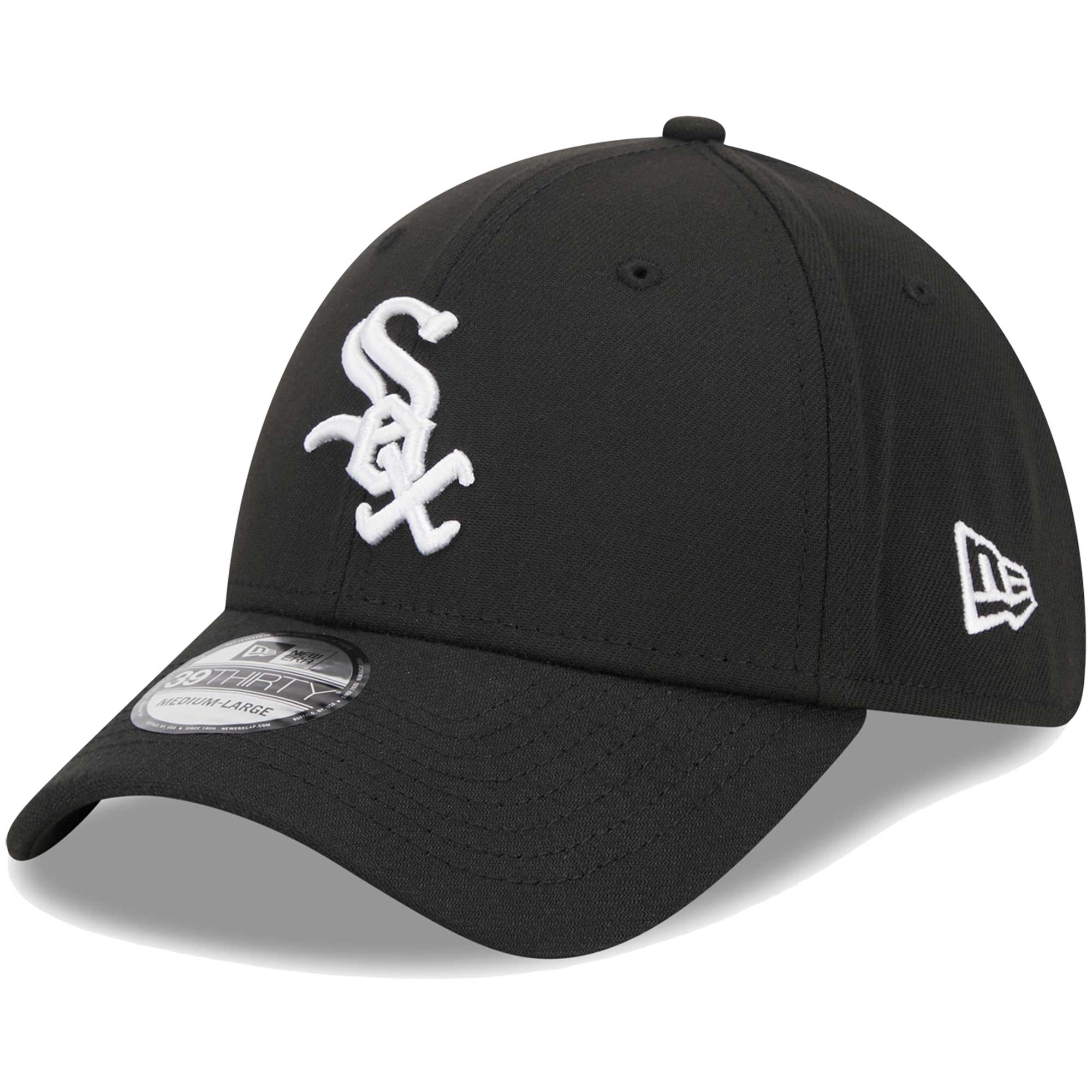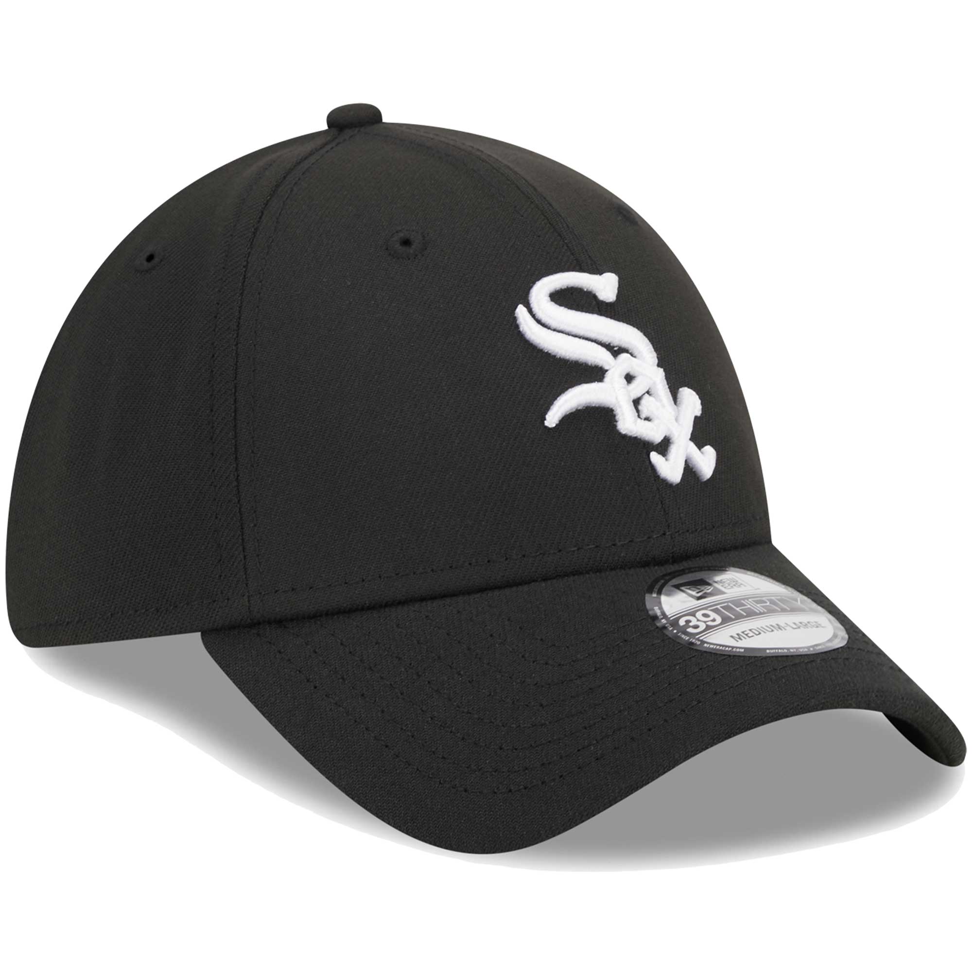Men’s Chicago White Sox New Era Black Logo 39THIRTY Flex Hat